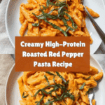This high-protein creamy roasted red pepper pasta is a flavorful and satisfying meal that combines tender pasta with a rich, velvety sauce made from cottage cheese and roasted red peppers. It’s perfect for a comforting weeknight dinner that’s both nutritious and delicious.