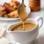 A rich and flavorful homemade Thanksgiving gravy made with browned onions, turkey drippings, and a hint of Cognac, perfect for complementing your holiday meal.