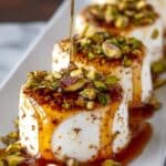 This Honey Fig Pistachio Goat Cheese Appetizer is an elegant and delicious starter perfect for entertaining. A creamy goat cheese log is rolled in crunchy roasted pistachios, drizzled with sweet honey and warm fig spread, then served alongside crackers or bread. The combination of textures and flavors will impress your guests with minimal prep time.