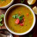 - Serve: Ladle the soup into bowls and garnish with diced fresh tomatoes, chopped cilantro, lemon wedges, and mango chutney as desired. Pair with homemade vegan naan or your favorite Indian bread. Enjoy!