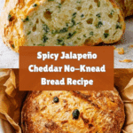 This Jalapeño & Cheddar No-Knead Bread is a flavorful and easy-to-make loaf that combines the spicy kick of jalapeños with the rich creaminess of diced cheddar cheese. The no-knead method makes it accessible for all skill levels, requiring minimal hands-on time and delivering a crusty, golden-brown artisan-style bread perfect for sandwiches or as a spicy accompaniment to meals.