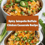 This Jalapeño Buffalo Chicken Casserole is a spicy, creamy, and flavorful dish combining shredded chicken, cauliflower rice, and a bold buffalo sauce with a hint of heat from jalapeños. Perfect as a low-carb, protein-packed meal, it’s baked to a bubbly, slightly crispy finish and garnished with fresh herbs and extra jalapeños for added zest.