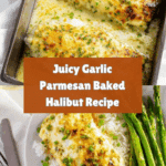 This Juicy Garlic Parmesan Baked Halibut offers a perfect combination of tender fish and a rich, savory topping. With roasted garlic and cheesy mayonnaise, it’s an easy yet impressive dish that will delight any seafood lover.