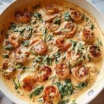 This Marry Me Shrimp recipe features succulent shrimp cooked in a creamy garlic sauce enriched with sun-dried tomatoes, parmesan cheese, and baby spinach. Perfect for a romantic dinner, this dish is quick to prepare and delivers a rich, comforting flavor that pairs wonderfully with pasta or crusty bread.