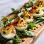 Mexican Deviled Eggs combine creamy mashed avocado and rich egg yolks with zesty lime, fresh cilantro, and a touch of heat from jalapeño. This vibrant twist on classic deviled eggs brings a creamy texture and bold Mexican flavors, perfect as a party appetizer or snack.