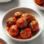 Store leftover meatballs and pasta in an airtight container in the refrigerator for up to 3 days. Reheat gently in a microwave or on the stovetop, adding a splash of water or marinara to keep the sauce moist.