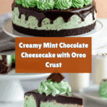 Keywords: mint cheesecake, chocolate cheesecake, Oreo crust, mint chocolate dessert, Andes mints cheesecake