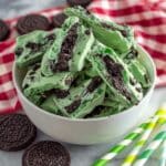 Keywords: Mint Oreo Bark, Oreo bark recipe, white chocolate mint bark, easy dessert, no bake dessert, holiday candy