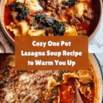 This Mouthwatering One Pot Lasagna Soup combines all the comforting flavors of traditional lasagna in a hearty, easy-to-make soup. Ground beef, aromatic herbs, crushed tomatoes, lasagna noodles, and creamy cheeses come together in one pot for a flavorful, satisfying meal that’s perfect for weeknights or cozy dinners.