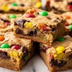 These Oatmeal Chocolate Chip Bars are a delicious treat that combines chewy oats with melty chocolate and colorful M&Ms. Perfect for an easy dessert or a sweet snack, they offer a satisfying balance of textures and flavors in every bite.