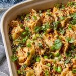 This One Pan Dumpling Dinner is a flavorful and comforting meal that combines tender chicken or pork dumplings with vibrant bok choy and a savory, creamy red curry sauce. Cooked all in one pan, it’s an easy weeknight dinner packed with Asian-inspired flavors and garnished with fresh cilantro, green onions, and toasted sesame seeds for added texture and aroma.