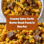 This One-Pot Creamy Spicy Garlic Butter Steak & Pasta is a comforting and flavorful meal that comes together quickly with minimal cleanup. Tender steak pieces simmer in a rich, garlicky cream sauce with a hint of spice, perfectly coating the pasta for a satisfying dinner.