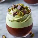- Garnish and Serve: Before serving, garnish each mousse glass with chopped roasted pistachios, chocolate curls or shavings, and optionally sprinkle with edible gold dust or sea salt flakes for an elegant presentation.