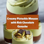 This Pistachio Mousse with Chocolate Ganache is a sophisticated and creamy dessert combining rich dark chocolate ganache with a smooth, nutty pistachio mousse. Perfect for special occasions, it features layers of luscious chocolate and delicately flavored pistachio mousse, garnished with roasted pistachios, chocolate curls, and optional edible gold dust for a luxurious finish.