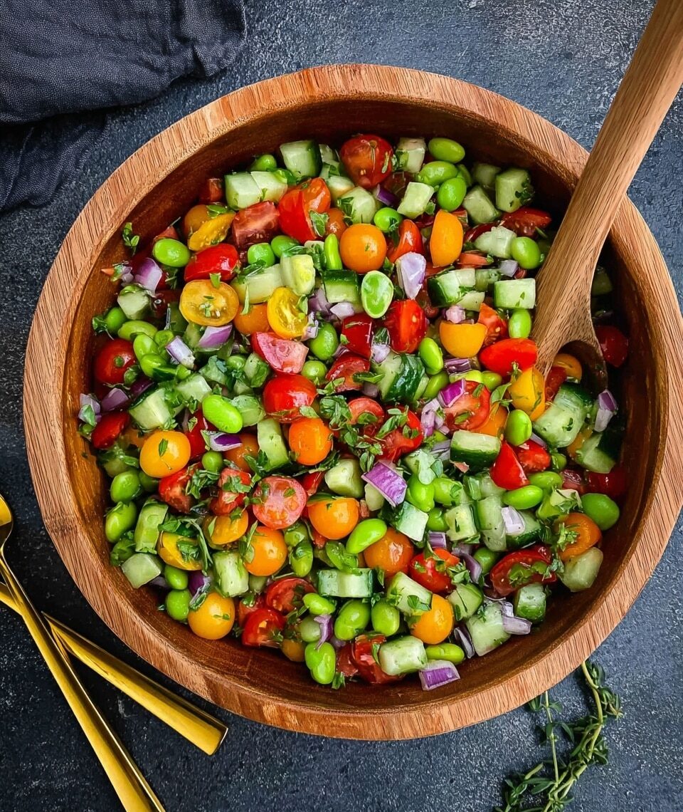 This Protein-Packed Edamame Salad is a fresh, vibrant, and nutritious dish perfect for a quick lunch or a healthy side. Combining tender shelled edamame with crisp cucumbers, sweet cherry tomatoes, red bell pepper, and a zesty lime dressing, it’s bursting with flavor and an excellent source of plant-based protein. Ready in just 20 minutes, it’s an easy, gluten-free, and vegetarian recipe that makes a refreshing and satisfying meal.