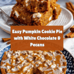 Keywords: pumpkin cookie pie, pumpkin dessert, fall recipes, pumpkin spice cookies, easy pumpkin pie, white chocolate pumpkin dessert, pecan dessert