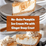 This Pumpkin Ice Cream Pie is a delightful no-bake dessert featuring a crunchy ginger snap cookie crust and a creamy, spiced pumpkin ice cream filling swirled with whipped cream. Perfectly chilled and garnished with sweetened whipped cream and pumpkin pie spice, it offers a smooth and refreshing way to enjoy pumpkin flavors any time of the year.