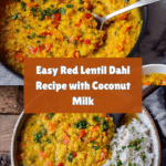 Keywords: red lentil dahl, vegetarian dahl recipe, lentil curry, easy indian dahl, coconut milk dahl, healthy lentil stew