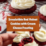 Delight in these irresistible Red Velvet Cookies topped with smooth, creamy cream cheese frosting. These soft and fluffy cookies feature a classic red velvet flavor, balanced with rich cocoa and a hint of vanilla, baked to perfection and generously coated with a luscious cream cheese frosting for an indulgent treat perfect for any occasion.