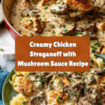This Rich Chicken Stroganoff is a creamy, comforting dish featuring tender chicken pieces coated in a light flour crust, sautéed to golden perfection, and simmered in a luscious mushroom sauce enriched with sour cream, Dijon mustard, and Worcestershire sauce. Perfect for a cozy dinner, this recipe combines hearty mushrooms, savory spices, and a deeply flavorful sauce served hot from the skillet.