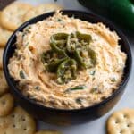 This dip has a moderate heat level thanks to the jalapeños and cayenne pepper. You can control the spiciness by adjusting the amount of cayenne or leaving some jalapeño seeds in.