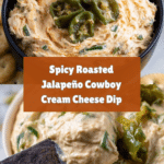 This Roasted Jalapeño Cowboy Cream Cheese is a spicy and flavorful spread perfect for snacking or entertaining. Cream cheese is blended with charred jalapeños, Dijon mustard, and a variety of herbs and spices to create a creamy, zesty dip with just the right amount of heat.