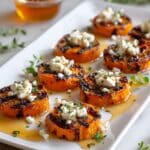 Keywords: roasted sweet potatoes, sweet potato appetizer, honey feta sweet potatoes, baked sweet potato rounds, healthy side dish, vegetarian appetizer