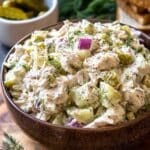Keywords: Chicken salad, dill pickle, creamy chicken salad, healthy chicken salad, picnic recipes