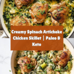 Keywords: Spinach Artichoke Chicken, Paleo chicken skillet, Whole30 chicken recipe, Keto chicken dinner, dairy-free creamy chicken, healthy chicken skillet