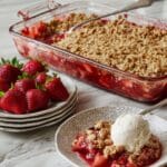 A delightful Strawberry Rhubarb Crunch featuring a sweet and tangy fruit filling topped with a crispy oat and brown sugar crumble. This easy-to-make dessert combines fresh strawberries and rhubarb with warm cinnamon and orange juice, baked under a buttery crust for a perfect balance of flavors and textures.