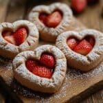 Keywords: strawberry sugar cookies, heart-shaped cookies, strawberry glaze, Valentine’s Day cookies, sugar cookie recipe, fruit glaze cookies, butter sugar cookies