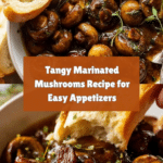 This Tangy Marinated Mushrooms recipe features cremini or white button mushrooms sautéed to golden perfection and infused with a vibrant, zesty marinade composed of red wine vinegar, garlic, Dijon mustard, and herbs. Chilled and garnished with fresh parsley, these mushrooms make a flavorful and versatile appetizer or side dish, perfect for enhancing any meal with a robust, earthy, and slightly spicy taste profile.