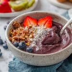 Since Açaí bowls are best enjoyed fresh, it’s recommended to eat immediately after preparation. If needed, you can store leftovers in an airtight container in the freezer for up to 24 hours. Thaw slightly before eating and give it a quick stir or blend again for the best texture.