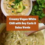 This hearty vegan white chili is packed with flavorful ingredients like soy curls, white beans, and green salsa. It’s a comforting, protein-rich dish perfect for chilly days or anytime you crave a satisfying, plant-based meal.