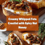 Whipped Feta Crostini with Hot Honey is a delightful appetizer that balances creamy, tangy cheese with a sweet and spicy kick. Perfect for entertaining or a casual snack, this recipe is quick to prepare and sure to impress your guests.