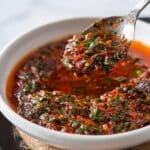 This Zesty Smoky Red Chimichurri is a vibrant and flavorful sauce that combines fresh parsley and cilantro with smoky paprika and a touch of heat from red pepper flakes. Perfect for elevating grilled meats, roasted vegetables, or as a zesty marinade, this easy no-cook chimichurri adds a bold and fresh kick to any dish.