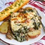 Keywords: Zuppa Toscana, casserole, Italian sausage, kale, potato casserole, Parmesan cheese, creamy, comfort food